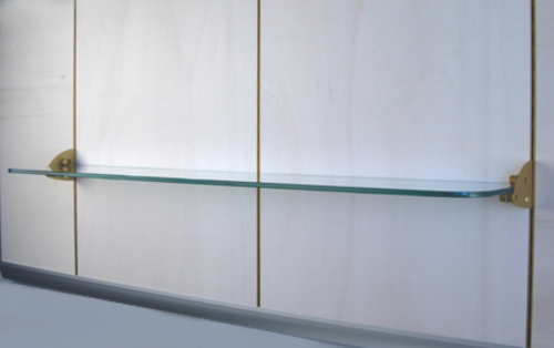 Central support for 8 mm thick glass shelves