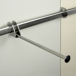 Supporto per esposizione frontale, con tappo metallico ferma-gruccia in finitura - filo utile 300 mm